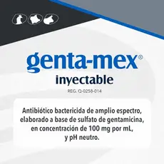 Genta-mex® Ynyectable Antibiótico bactericida de amplio espectro, elaborado a base de sulfato de gentamicina, en concentración de 100mg por mL, y pH neutro. COD:1311 REG: Q-0258-014