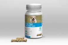 Tabletas Palatables Suplemento vitamínico para cachorros Formulación Vit. A 1000 UI, Vit. D3 100 UI, Vit. E 5 UI, Vit. K1 120 mcg, Vit. B1 0.75 mg, Vit. B2 0.75 mg, Vit. B6 0.30 mg, V
