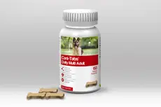 Tabletas Palatables Suplemento vitamínico para perros adultos Formulación Vit. A 1500 UI, Vit. D3 150 UI, Vit. E 15 UI, Vit. B1 0.50 mg, Vit. B2 0.50 mg, Vit. B6 0.25 mg, Vit.