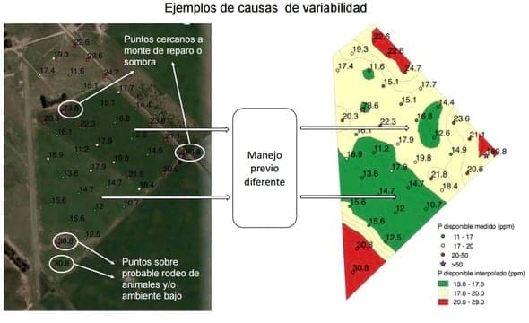 El manejo del fosforo no solo debe enfocarse desde el punto de vista quimico, siempre vamos a encontrar una alta variabilidad en espacios cortos sin embargo se han puesto a pensar que en la amazonia casi todos los suelos aluviales de terrazas altas evolucionados presentan deficiencias de fosforo con tenores menores a los 7 ppm, sin embargo observamos una vegetacion exhuberante que ha evolucionado en cientos de años que a su vez presenta una variabilidad de especies que conviven en armonia, como lo hacen? como obtienen la energia (Fosforo) para sus procesos fisiologicos, ahora ya sabemos el rol que cumplen las micorrizas que en asociacion simbiotica con las especies (Endomicorrizas) obtienen el fosforo de formas insolubles (P-Fe y P-Al) esta asociacion es especifica y hay todo un sistema de reconocimiento de ahi la importancia de las especies nativas, por otro lado hemos observado que el 85 a 9'0 % de las raices de cualquier especies se encuentran en los 15 cm superiores por lo cual cuando muestren es recomendable hacerlo a dos profundidades 0 -15 y 15 - 30 la primera es lo inmediato lo que podemos aprovechar en los cultivos anuales mientras que la segunda profundidad son las reservas que se podria aprovechar si es que trabajamos cultivos permanentes , para el caso de la amazonia que es donde trabajo inoculamos con cepas nativas a las especies perennes llamese forestales, frutales, u otras esta inoculacion se hace en vivero y se observa una diferencia significativa en el desarrollo y vigor de los plantones con y sin micorrizas, en plataciones industriales permanentes como el Cacao, Cafe, Palmas en general, recomendamos aplicar entre 100 a 200 gr de roca fosforica al 30 % de P2O5 segun el contenido del suelo, la aplicacion es al fondo del hoyo (15 cm) toda vez que el P no se va a mover del suelo y las plantas lo van a tener a su disponibilidad por no menos de 5 años, usamos la roca sin moler para que la propia acidez del suelo vaya liberando gradualmente el P, la superficie del granulo es corroida por la acidez y se va liberando P, Ca y Mg, que pueden ser absorbidas directamente por la planta, mientras que las formas insolubles la va tomando las micorrizas, para que el sistema sea sostenible en el diseño de la plantacion incluimos especies caducifolias que se defolian en los veranos con lo cual aportamos p organico que una vez mineralizado volvera al ciclo en el sistema, por eso que no nos hacemos problemas en la variabilidad espacial del P ni con los laboratorios toda vez que sabemos que ellos tienen un blanco o estandar que utilizan en cada corrida para validar sus determinaciones, si el blanco se sale de lo normal toda la corrida no sirve.