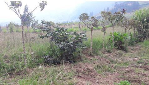 - El área de café (2712 m2), integrado de árboles de sombra chirimoya, guaba, luma, café, maracuyá, fauna silvestre, faique, salvia, siguiche, cedrillo, higuerón, gualache, tarazo, espanto, palo negro, hoja blanca, guayuro, guayuro amarillo, pumamaqui, sauce, laritaco, porotillo, sauco, yanacaspe, senein, matico, calvario, saco, rosarillo, romerillo, gualpe, uña de gato, india, shimir, arabisco, arupo. En esta sección se planteó: (i) mejorar el manejo del riego (introducción del riego por aspersión); (ii) realizar una cerca viva con flor de india para proteger mejor los cultivos; (iii) incrementar la superficie del café para elevar los ingresos familiares (se sembraron 500 nuevas plantas); y (iv) se incrementó el número de especies frutales para lograr una mayor diversificación del huerto y la incorporación de abonos orgánicos (biol) para mejorar la fertilidad de los suelos.