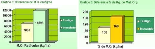 El uso de bacterias del género Azospirillum produce un apreciable y visible aumento del volumen radicular tanto en sorgo como en maíz, cultivos que implantados en una rotación adecuada e inoculados convenientemente pueden contribuir a un notable incremento de la Materia Orgánica de Asimilación Directa.