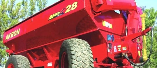 La tolva autodescargable Akron MAX 24 descarga 8.000 KILOS POR MINUTO con un tubo de 460 mm. La versión AKRON MAX 28 posee una velocidad de descarga de 10.000 KILOS POR MINUTO gracias al tubo del sinfín vertical de 500 mm.
