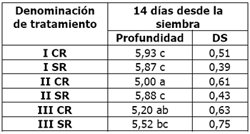 Tabla 13: profundidad de siembra en centímetros (De Simone y Godoy. Salta, octubre 2008)