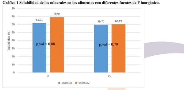 La solubilidad (%) del calcio y del fosforo se calculó mediante la siguiente ecuación: (masa mineral) sobrenadante / (masa mineral) alimento. Cuando mayor sea la solubilidad, mayor será la probabilidad de que los animales absorban los minerales. Por tanto, el objetivo es tener la máxima solubilidad.