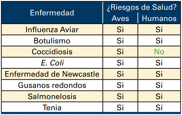 Se sabe que las moscas son vectores de muchas enfermedades tanto para los humanos como para los animales, y se consideran como señal de una mala condición sanitaria. Las moscas trasmiten enfermedades y son portadoras de virus, bacterias, parásitos y hongos en su cuerpo o a través de la boca después de ingerir material infeccioso. Las aves pueden comer moscas en cualquier etapa de su vida y se infectan ingiriendo estos insectos o por medio del contacto directo. Las poblaciones de moscas transmiten enfermedades en las granjas avícolas, haciendo más difícil la eliminación y los tratamientos de las enfermedades. La figura 2 muestra varias enfermedades de preocupación para la industria avícola que las moscas pueden portar, aunque hay muchas enfermedades más2, 3, 5, 6, 8, 9.