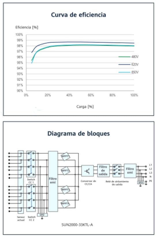 Permite mayor ahorro debido a su topología de inversor de alta eficiencia con una eficiencia máxima del 98,6%.