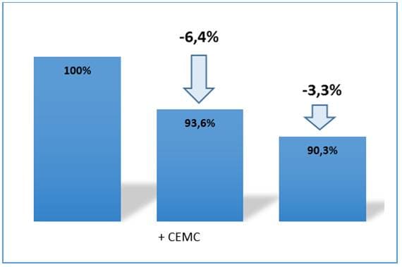 Figura 2 – Reducción del costo de alimentaciónen pollos de engorda (%) con el uso de un complejo enzimático de multicarbohidrasas (CEMC) con y sinsuperdosis de fitasa. Precios de noviembre de 2020 (Boletín JOX,2020)