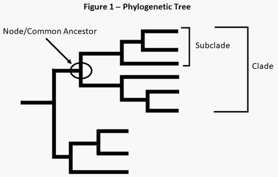 Página de secuenciación genómica y caracterización genética para obtener más información). Los clados y subclados se muestran en los árboles filogenéticos como grupos de virus que por lo general tienen cambios genéticos similares (es decir, cambios en los nucleótidos o aminoácidos) y tienen un único ancestro común representado como nodo en el árbol (ver Figura 1). Dividir a los virus en clados y subclados ayuda a los expertos en influenza a hacer el seguimiento de la proporción de virus de diferentes clados que están en circulación.