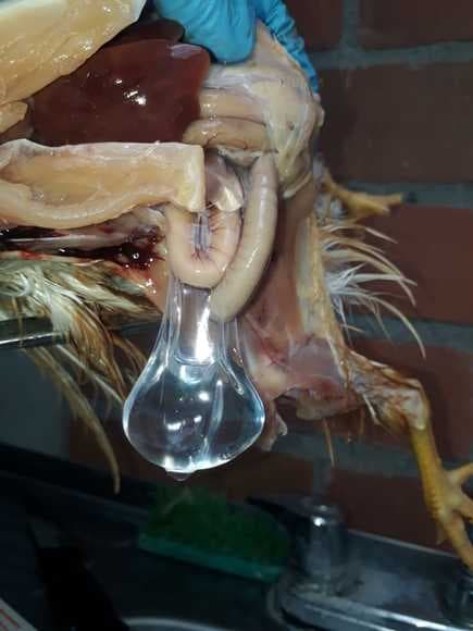 Saco Aereo abdomibal derecho aves de 2 semanas.