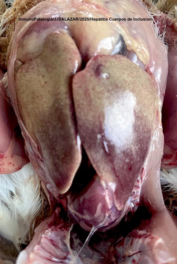 Hepatomegalia, Esplenomegalia, Nefritis, Proventriculitis, en casos de pollos de engorde de diferentes edades en Colombia, en hígado la histologia demostró los Corpúsculos de inclusión, en la mayoría de los órganos se presenta NECROSIS. se puede inferir el daño en la respuesta Inmune Celular al estar muy afectado bazo, Bolsa, hígado, riñones. NotA.Los casos se demostraron por biologia Molecular(tarjetas FTA) para serotipos D11,8a-8b,Fad 1...