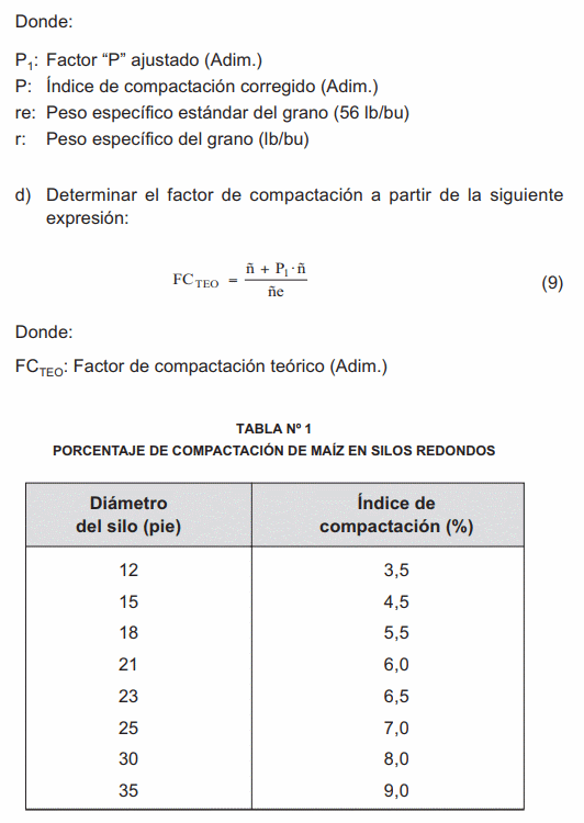 2. Los factores de compactación son exclusivos para cada tipo de grano y que sea almacenado por periodos prolongados de tiempo (mínimo dos meses).