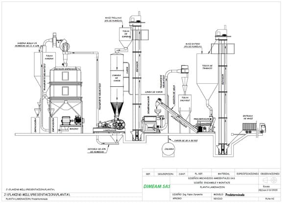 Diagrama de producción de harina precocida de Maíz para hacer tortillas y arepas.