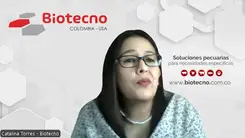 Alejandra Mesa Echavarría y Francia Bobadilla de Biotecno conversan sobre la importancia del uso de talcos secantes en los cerdos recién nacidos.