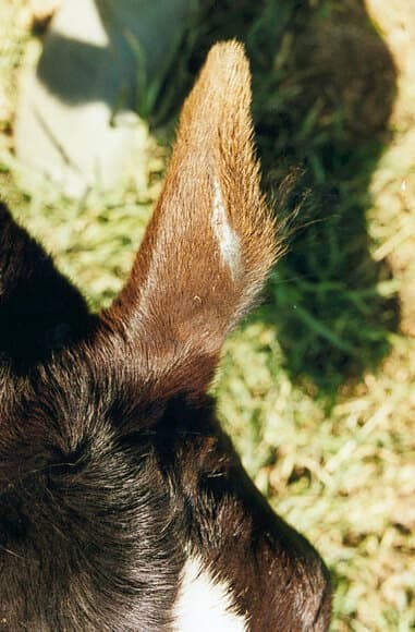 El ternero 30 días de edad presentó poliartritis (2 carpos y 2 tarsos), sin onfalitis. El diagnóstico presuntivo de salmonellosis se realizó teniendo en cuenta la incipiente gangrena seca que presentaban los bordes del pabellón auricular izquierdo según se ve en la fotografía....