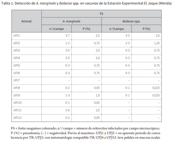 El grupo de microorganismos en torrente sanguíneo con mayor repercusión en la ganadería bovina venezolana incluye Anaplasma marginale (Theiler, 1910), Babesia bovis (Babes, 1888), Babesia bigemina (Smith y Kilborne, 1893) y Trypanosoma vivax (Zieman, 1905) (1,2), las cuales son causales de efectos negativos en la salud de los rebaños y en la producción y rentabilidad de los sistemas de producción establecidos. Sus prevalencias han sido relacionadas con factores como edad, sexo, raza, propósito, sistema de manejo, densidad poblacional, aplicación de tratamientos y movilización de ganado, además de otros como la región agroecológica, la estación climática, la extensión de la explotación y la presencia o control de vectores. En todas estas situaciones han sido identificados brotes en diferentes zonas del país, fundamentalmente en aquellas que son estratégicas para la seguridad alimentaria (3).