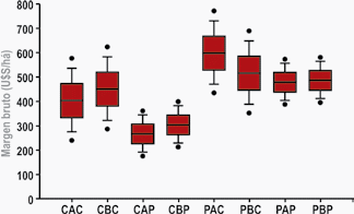 Se realizó un análisis económico en base a la generación de un sistema de producción (SP) para cada una de las 8 alternativas descritas. De esta forma, se toman los indicadores físicos obtenidos en el ensayo y se extrapolan a una situación de producción comercial. Si bien las producciones obtenidas en los sistemas de doble encierre son las más altas, no ocurre lo mismo con el margen bruto logrado, en parte porque existe un importante excedente de forraje en estos dos sistemas durante los meses de otoño e invierno, donde la carga de animales sobre pasturas es mínima.