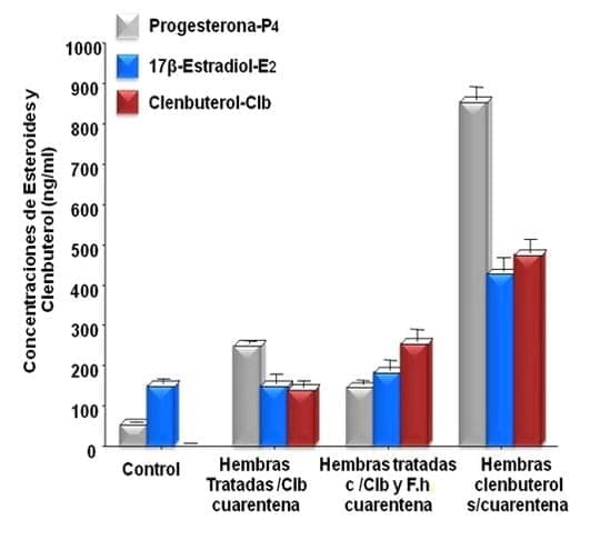 The increase in human population in recent decades has resulted in demand for food, especially animal protein products such as sheep, goats, horses, swine, camels, buffalo, as well as the most important source, ie bovinos. Los products from major advances in breeding and on nutritional quality of the animals have not been sufficient to produce protein products of high nutritional quality, global climate change and diseases (zoonoses), have also contributed to this loss of products, allowing the industry to develop chemicals (drugs-anabolic) that alter the body condition of animals, regardless of metabolism (anabolism and catabolism) or degradation thereof by the organs involved. The aim of this study was to determine, first, the concentrations of beta-agonists (mainly clenbuterol) in animals intended for slaughter for human consumption, and on the other, changes in physiological components, and for this, we determined the metabolic profile with 12 parameters differents (kit-Bio-System, USA), and measured the concentrations of hormones: estradiol (E2) and progesterone (P4) (diagnostic kit, USA) and serum concentrations of clenbuterol (RIDASCREEN kit, clenbuterol- Fast-R-Biopharm AG, Darmstadt, Germany). The results showed that the values of clenbuterol was found in cattle in the order of 251-1263 ng / ml, whereas estradiol concentrations ranged from 162-1150 pg / ml, whereas metabolic values: alanine aminotransferase, bilirubin, glucose, urea / BUN increased in males and females exposed to clenbuterol, affecting physio-hepatic and reproductive functions. This indicates a high degree of contamination of these animals caused by high doses of clenbuterol as a food additive they are subjected