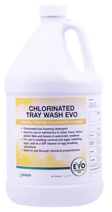 Chlorinated Tray Wash™ EVO es un detergente alcalino clorado especialmente desarrollado para la limpieza eficiente en sistemas automáticos de lavado, garantizando la eliminación pr