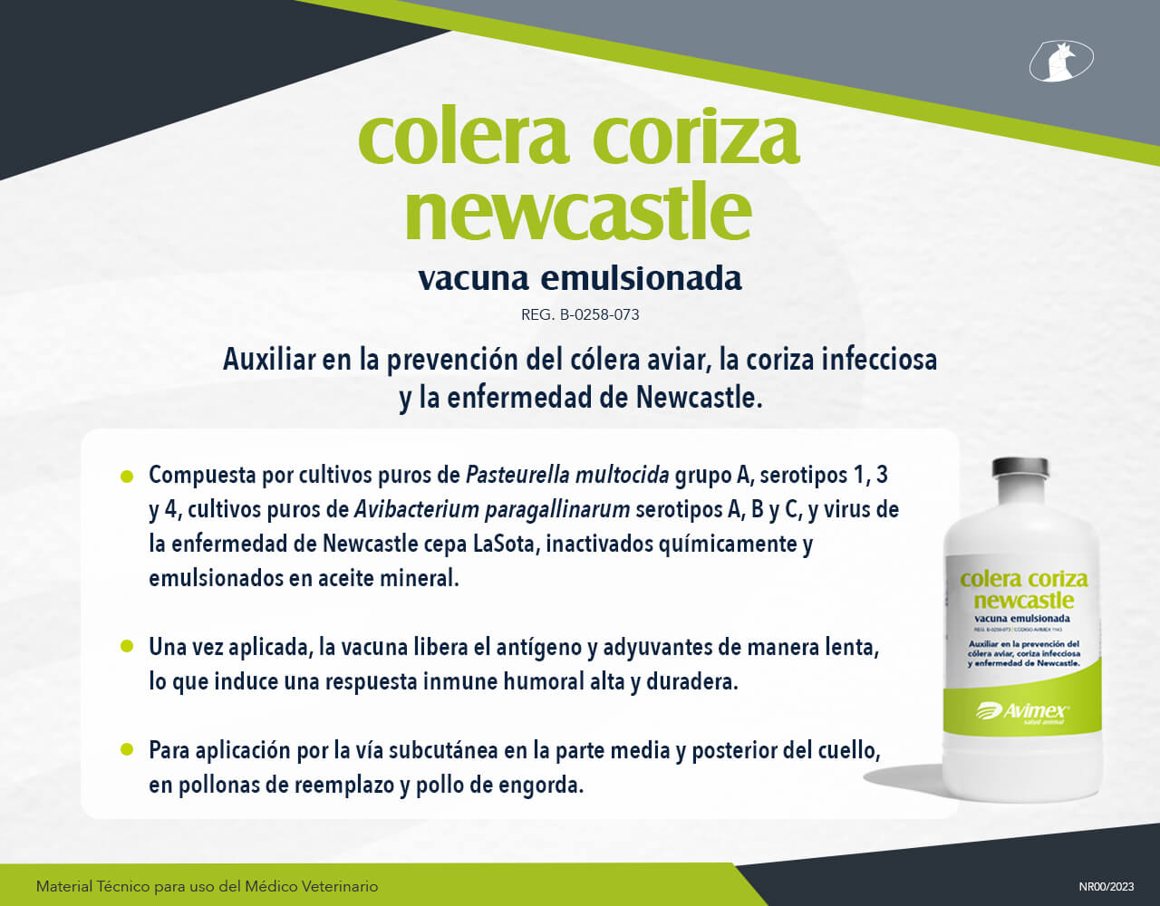 Auxiliar en la prevención del cólera aviar, la coriza infecciosa y la enfermedad de Newcastle.
