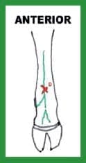 Técnica: se debe realizar una ligadura con tubo de Esmarch a la altura del metatarso o metacarpo. Por lo general esta vena se ingurgita y se palpa en el centro de la cara anterior del miembro y en el borde inferior de la articulación del menudillo (Fig. 34 y 35). Puede verse dificultada la ubicación cuando existen procesos inflamatorios serios.