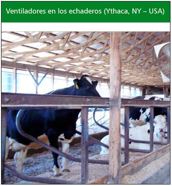 Para poder entender lo que significa la cantidad de calor que produce la vaca, Flamenbaum (2010b) cita una comparación interesante: un hombre en estado de descanso genera calor equivalente a un foco de 100 watts; una vaca en seca y en descanso genera calor equivalente a 9 focos de 100 watts; una vaca en producción genera además el equivalente a un foco por cada 4.5 kg de leche producida; es decir que si una vaca alta productora produce 45 kg de leche al día, generará 10 focos más los 9 en descanso; si le agregamos la radiación solar directa que genera el equivalente a 16 focos más, entonces la vaca tendrá que disipar el equivalente a 35 focos de 100 watts, los que en verano no va a ser posible de controlar.