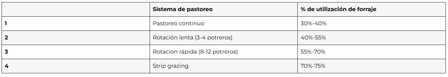 Utilización de forraje según sistema
