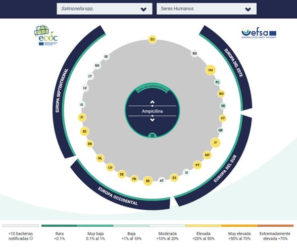 Una herramienta interactiva de visualización de datos muestra los niveles de resistencia en humanos, animales y alimentos, país por país, en 2019 y 2020. Haga CLICK sobre la imagen inferior para acceder a esta herramienta on line sobre resistencia a los antibióticos en Europa.