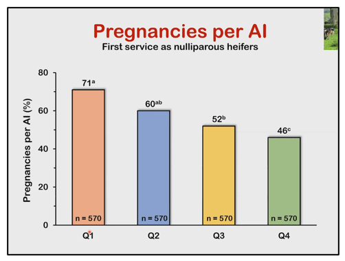 - Cada quartil equivale al 25% de las 1800 vaquillonas a la primera concepción.