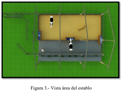 Una vez definido esos dos aspectos, se procede a diseñar el plano conforme a los requerimientos de bienestar y confort para que los animales puedan alcanzar su óptimo desempeño productivo como se observa en la figura 3. Además, se tiene en cuenta los requerimientos del personal para que las labores en el establo sean fáciles, rápidas y que el trabajo se pueda realizar con toda comodidad.