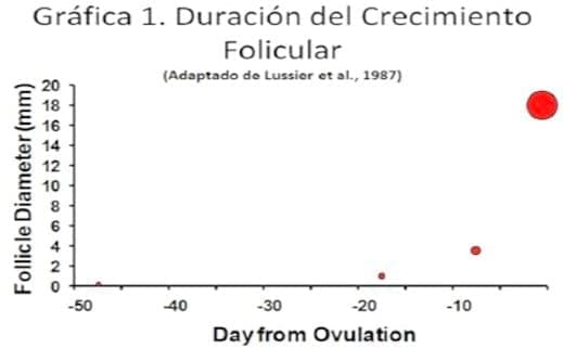 El patrón de crecimiento de ondas foliculares en ganado lechero ha sido descrito en detalle por muchos autores desde entonces. Es así como, por ejemplo, la variación en el número de ondas foliculares por ciclo estral fue inicialmente asociada a factores como raza, balance energético, estado de lactancia, y número de partos. Estudios posteriores (Sartori et al., 2001, Buttler et al., 1989) concluyeron que la ingesta de materia seca, e indirectamente la producción de leche, está fuertemente asociada con las variaciones en el número de ondas foliculares por ciclo estral, siendo menor el numero de ondas por ciclo para animales de alto consumo y mayor para animales de bajo consumo. Hoy también entendemos que la duración de una onda folicular desde su emergencia es de 6 a 10 días dependiendo del número de ondas por ciclo estral.
