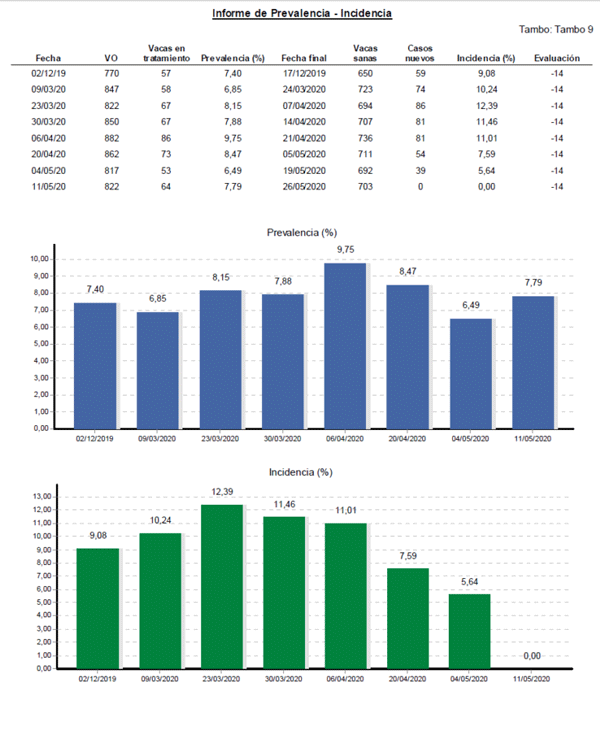 Nuestro colega, el Veterinario Sergio Castro, está trabajando con un Programa de Computación especialmente desarrollado para facilitar el manejo de las MC, su registro y análisis de la información. Más abajo hay un cuadro y dos gráficos que sirven como ejemplo de datos de Prevalencia e Incidencia que son muy útiles para el seguimiento de la enfermedad para el veterinario, productor y ordeñadores, que surgen de dicho programa.