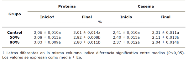 Cuadro 3. Comportamiento de la proteína bruta y la caseína durante el experimento