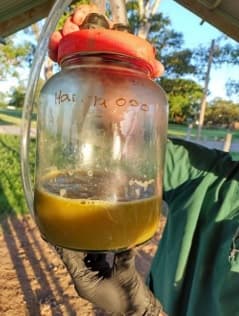 Una vez corroborado todo esto, conectar la sonda al sistema de vacío, que es inducido por una bomba de vacío eléctrica conectada a un frasco de vidrio cerrado herméticamente semejando un kitasato. La extracción de líquido ruminal comienza apenas unos segundos después de generado el vacío en el sistema. Se aconseja producir movimientos de tracción y retracción en la sonda para evitar adherencias a las paredes del rumen y oclusión de los orificios que impiden la extracción de licor.