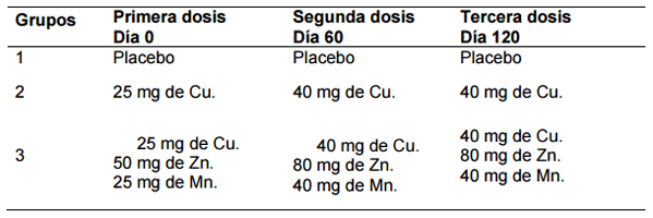 Saludos. Me pareció una investigación muy interesante, de la cual se pueden apreciar cambios muy significativo en la ganancia de peso. La aplicación de cu y una alimentación complementaria, nos garantiza buenos resultados. Por lo que acá en ecuador se tiene protocolos diferentes de administración de cu, aunque la suministración del mismo den los grupos 2 y 3 están muy bien planteados. Éxitos.