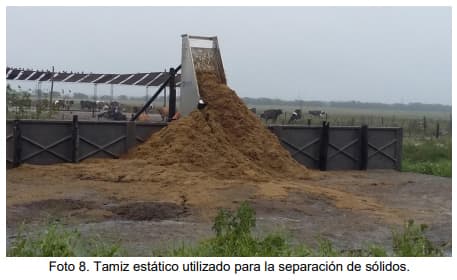 Durante el periodo fueron distribuidas aproximadamente 45 tn de MS de los sólidos recuperados, volumen que corresponde a 800-1.000 y 100-120 kg de N y P, respectivamente. Este material fue aportado en los potreros A1 y A2 (Foto 9).