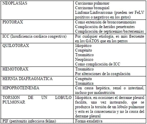 La causa es muchas veces idiopática, otras veces es traumática, neoplásica, debida a ICC en el gato, linfangiectasias torácicas, malformaciones congénitas,...