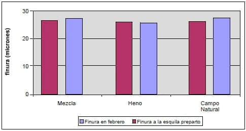 preñados durante la ecografía realizada en agosto. Sobre cada animal se tomó una muestra de lana del costillar la cual fue remitida al Laboratorio de Lanas de Rawson (Convenio INTA-Provincia de Chubut). Sobre dichas muestras se realizaron las determinaciones estándares que realiza el OFDA 2000. En febrero del 2006, en la esquila de ojos, se tomó una nueva muestra de lana del costillar y se remitió nuevamente al Laboratorio de Lanas de Rawson. Las principales variables medidas fueron finura promedio (expresada en micrones), coeficiente de variación de la finura (expresada en porcentaje) e índice de confort.