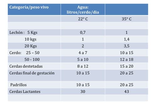El agua nos resulta tan común que nos parece raro considerarla como nutriente, siendo esencial para la vida, privar a los cerdos de agua resultan en consecuencias tales como reducción del consumo de alimento, reducción de crecimiento, reducción de la conversión de alimento.