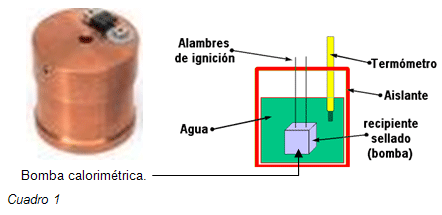 - Según la primera Ley de la termodinámica todas las formas de energía pueden convertirse cuantitativamente en calor; entonces, se puede medir el calor de combustión de los ingredientes.