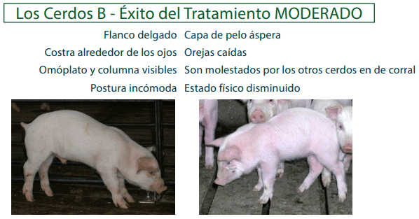 Según el programa El Cuidado Individual de Cerdos, los cerdos se identifican como A, B, C o E. Lo ideal sería que a un Cerdo A se lo trate y deje en el corral, los Cerdos B deben ser tratados y dejados en el corral o llevados a un corral de cuidados intensivos dependiendo de los síntomas, mientras que los Cerdos C deben ser tratados y llevados a un corral de cuidados intensivos para ser monitoreados de cerca. Los Cerdos E deben ser sacrificados de forma humana. Los cerdos identificados como Cerdos A generalmente han estado enfermos durante 24 horas o menos, los Cerdos B de 24 a 48 horas y los Cerdos C de 3 a 5 días.
