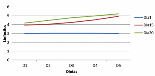 Significativamente, en los días de muestreo de esta investigación, las poblaciones inmunes aumentaron, explicado esto por la acción ejercida por los probióticos y la preparación del sistema inmune del hospedador. Galdeano et al. (2013) demostraron que las bacterias probióticas indujeron un aumento en la celularidad de la lámina propia del intestino, principalmente en las células mononucleares, sin alterar la histología normal del intestino, donde los neutrófilos son las células predominantes.