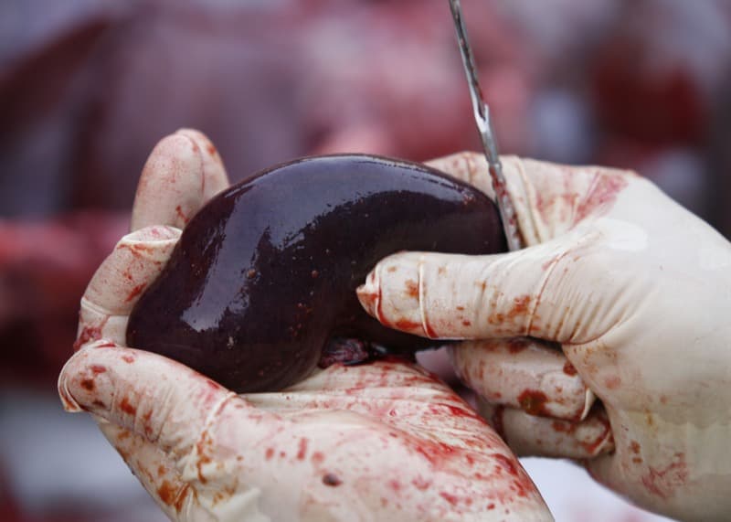En la figura 3 se puede resaltar la esplenomegalia típica de estas necropsias.