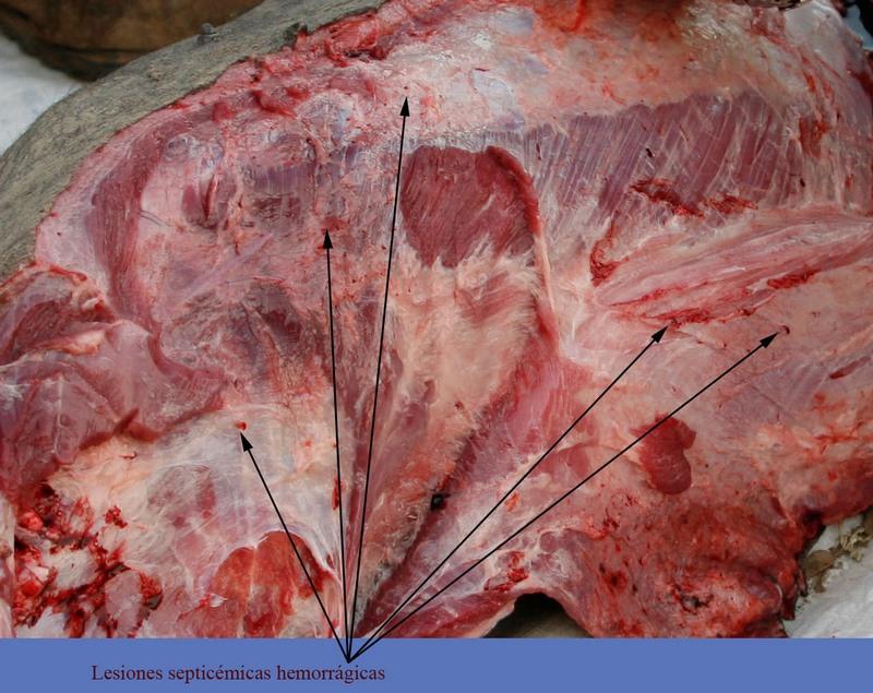 En la figura número 6 se pueden observar las lesiones septicémicas hemorrágicas de los animales necrosados.