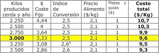 Prácticamente los únicos 2 costes variables en un criadero son la alimentación de los cerdos producidos y los fletes y guías.