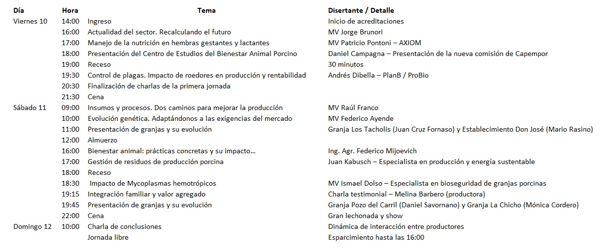 El Encuentro de productores porcinos de "Cosa de Chanchos" se realizará los 10 11 y 12 de abril de 2026 en el Hotel Libertador de la ciudad de La Falda (Cordoba. Argentina).