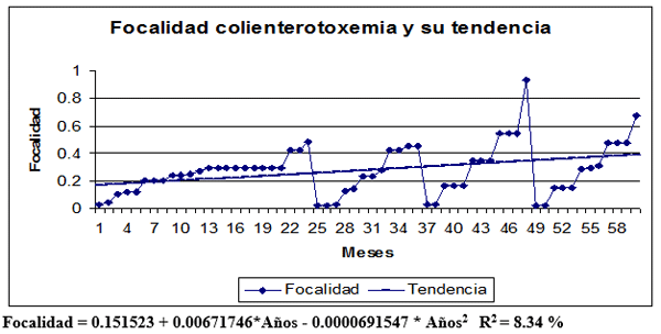 Figura 2. Focalidad y tendencia de la colienterotoxemia en el período evaluado.